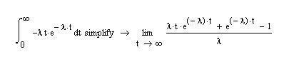 «вероятность безотказной работы как функция времени» - не что иное как: «функция распределения вероятности безотказной работы». Почему данная формула отличается от канонического вида, автор объяснить постеснялся, а потом, вероятно и сам забыл. Забыл, но делать-то что-то надо, поэтому «среднее время безотказной работы» (которое не что иное как «математическое ожидание времени отказа») автор считает по непонятной формуле: площадь фигуры, ограниченной сверху функцией распределения вероятности безотказной работы. Мало того, что данная формула неверна, давайте попробуем решить предложенный автором интерграл на «МатКАД-е»: