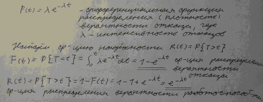 Дошёл черёд до вопроса: «Выражение показателей надёжности в случае экспоненциального распределения».