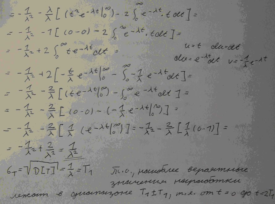 Несмотря на формулировку «дисперсия времени безотказной работы», операция производится над функцией распределения вероятности отказа (которою автор так и не написал). Т.к. если «прибор работает 5 часов плюс/минус 30 минут», это тоже самое, что и «мат. ожидание поломки 5 часов, дисперсия 900 минут».