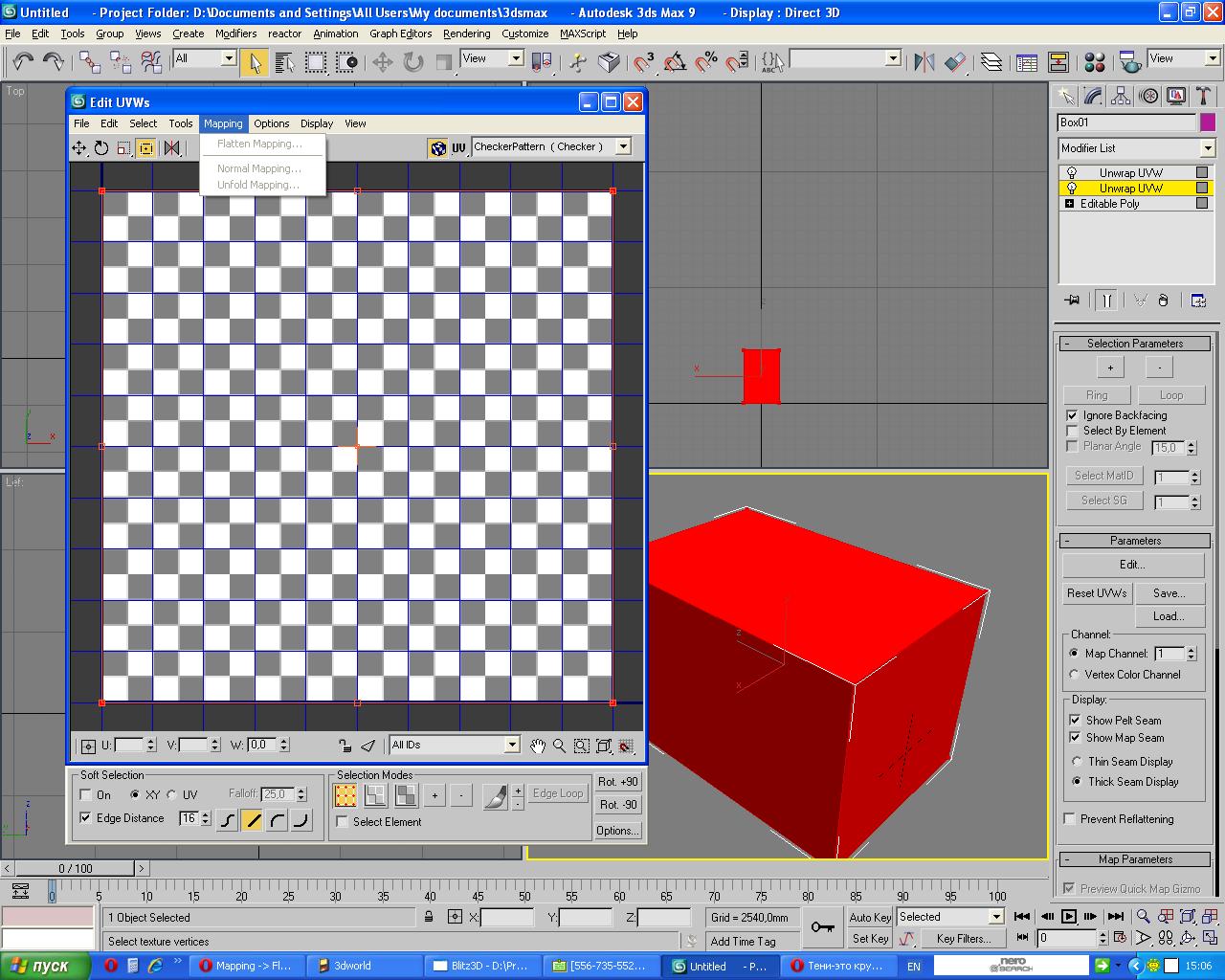 Создал сцену...создал куб.....конвертировал в едитбл поли....сделал развертку всех полигонов....пункт меню не доступен.