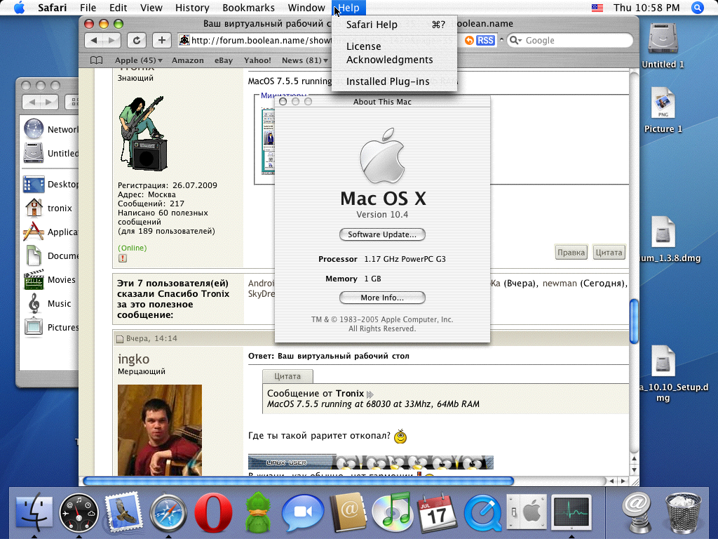 MacOS 7.5.5 running at 68030 at 33Mhz, 64Mb RAM