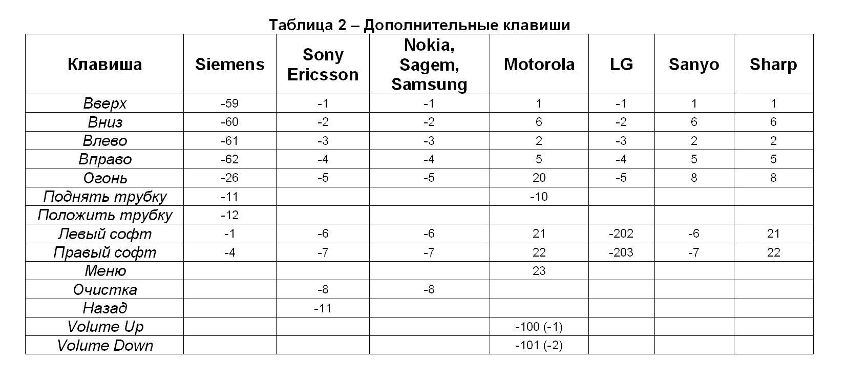 Кидаю тебе java мидлет, который дает коды клавиш - Бери здесь или сразу здеся