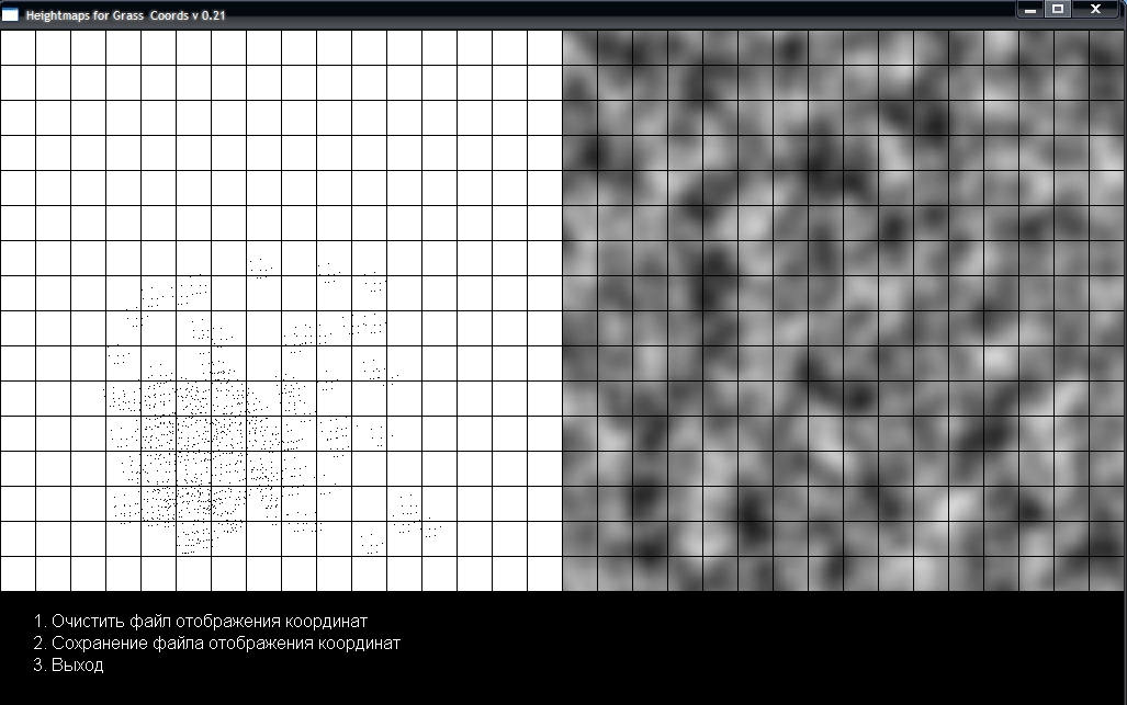 Не стал создавать новую тему, решил вот выложить свой редактор травы  Суть работы заключается в следующем... Как то роясь в одном из билдов сталкера, я увидел на одном из фото то что там видна вся первая локация сверху (и закрашена в зеленый цвет) а где дорога там как раз все пусто, и я подумал создать такую программу в которой можно было бы "рисовать траву" по террайну, (Скриншот2) то есть черные точки это и есть будушие координаты кустов, далее идет конвертация в файл, и когда мы уже запускаем нашу к примеру игру этот текстовый файл конвертируется в 3д координаты и загружается трава..  (Скриншот1)