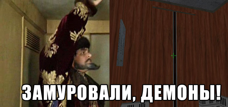 У меня почему-то лифт не открывался, но поехал. И я начал плавно взлетать и оказался приклееным к потолку