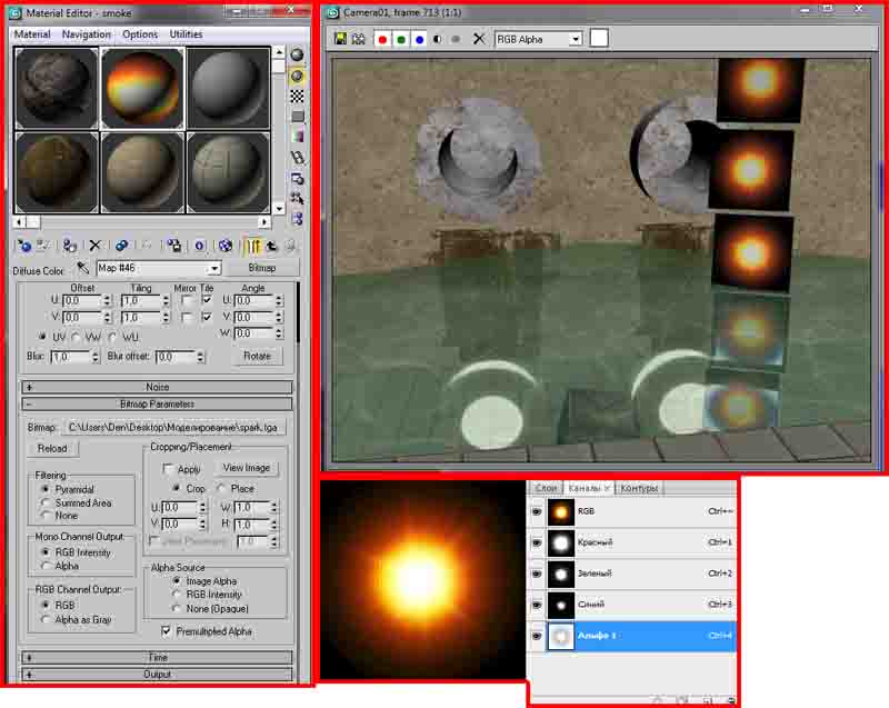 на скрине может альфа-маска не правильно сделана, но еще раз говорю я по разному пробовал и по уроку ABTOMAT'a и по урокам в интырнете, но все равно не работает.  Помогите плиз, а то уже хз что делать.