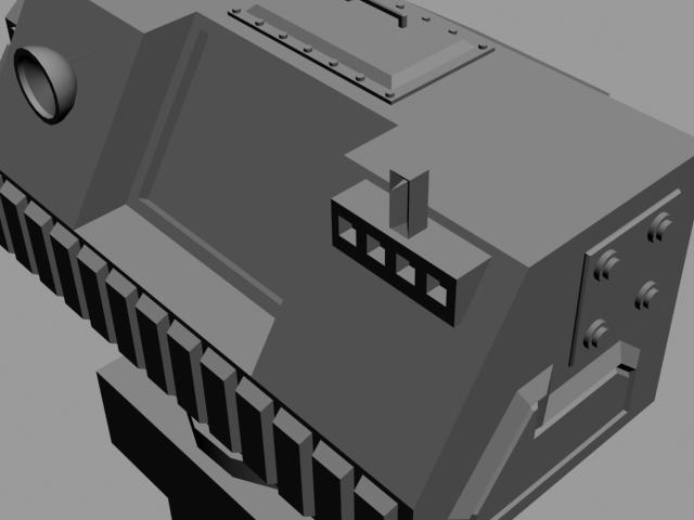 Кабину делал движением полигонов. Из урока фаталикса тут использованы знания - клонирование кучи моделей с опред. расстоянием (броня на кабине) и указание цвета модели на черный + стандартный материал. То есть практически все свои знания.