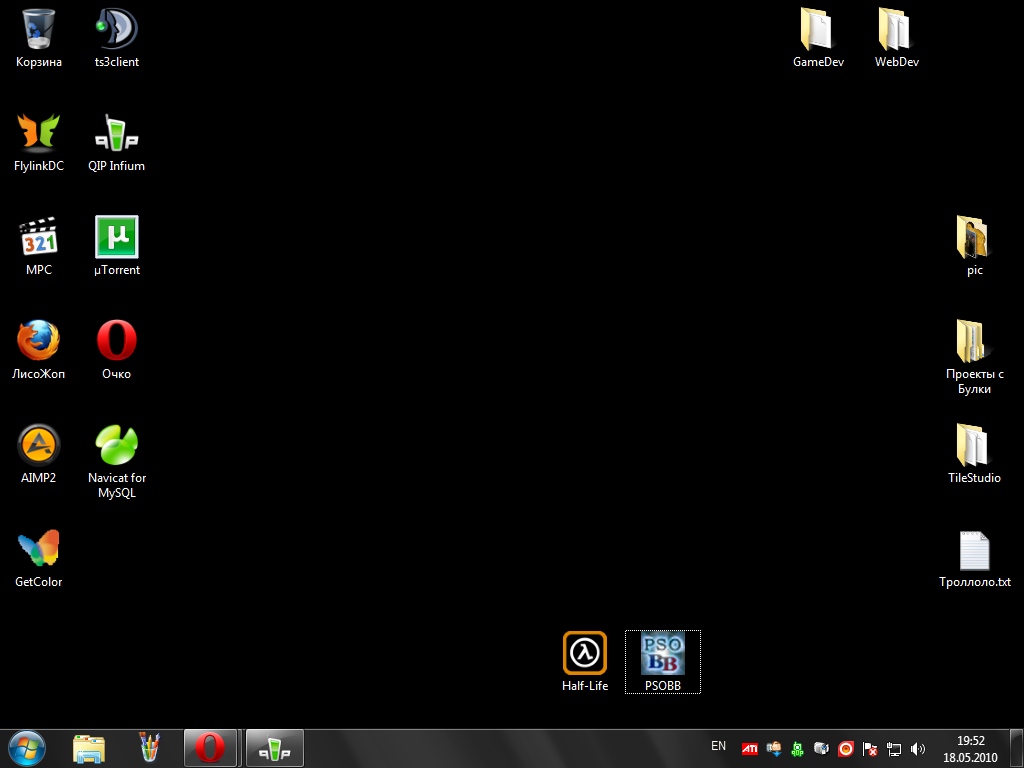 Вот мой рабочий камп) На обои не смотрите! это одна из разрабатываемых прог управляет фоновым рисунком, а мне менять лень, ибо вижу рабочий стол только дважды в день: утром когда прихожу и вечером когда ухожу
