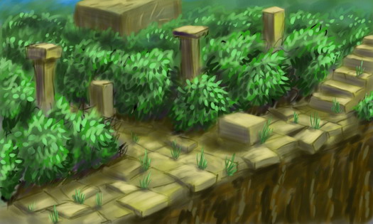 Клёва! Особенно растения и дорожка. Обрати внимание что склон горы(справа внизу) вымазан поносом. Цвета наверна нада подкорректировать.