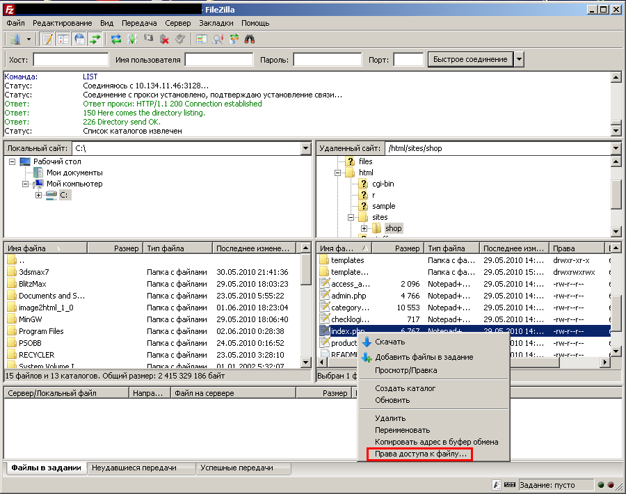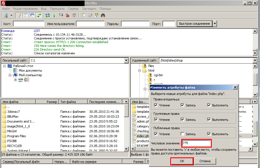 FileZilla просто пишет: unknown SITE command на мою команду SITE CHMOD 775 users