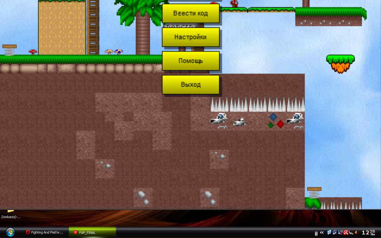 Завтра надо будет соединить меню с игрой, сделать ещё пару уровней. Может быть забацать какие-нибудь очки и наконец сделать хелсбар для ГГ. Ну а кроме того ещё один вид врагов можно <_<.