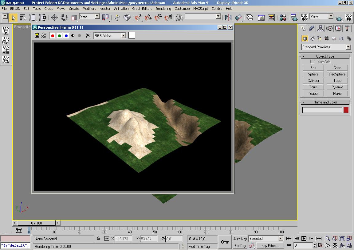 4)Теперь вставляем в этот проект наше ранее отрендренное изображение ландшафта(вид сверху) и пытаемся растянуть его по размеру 256х256.