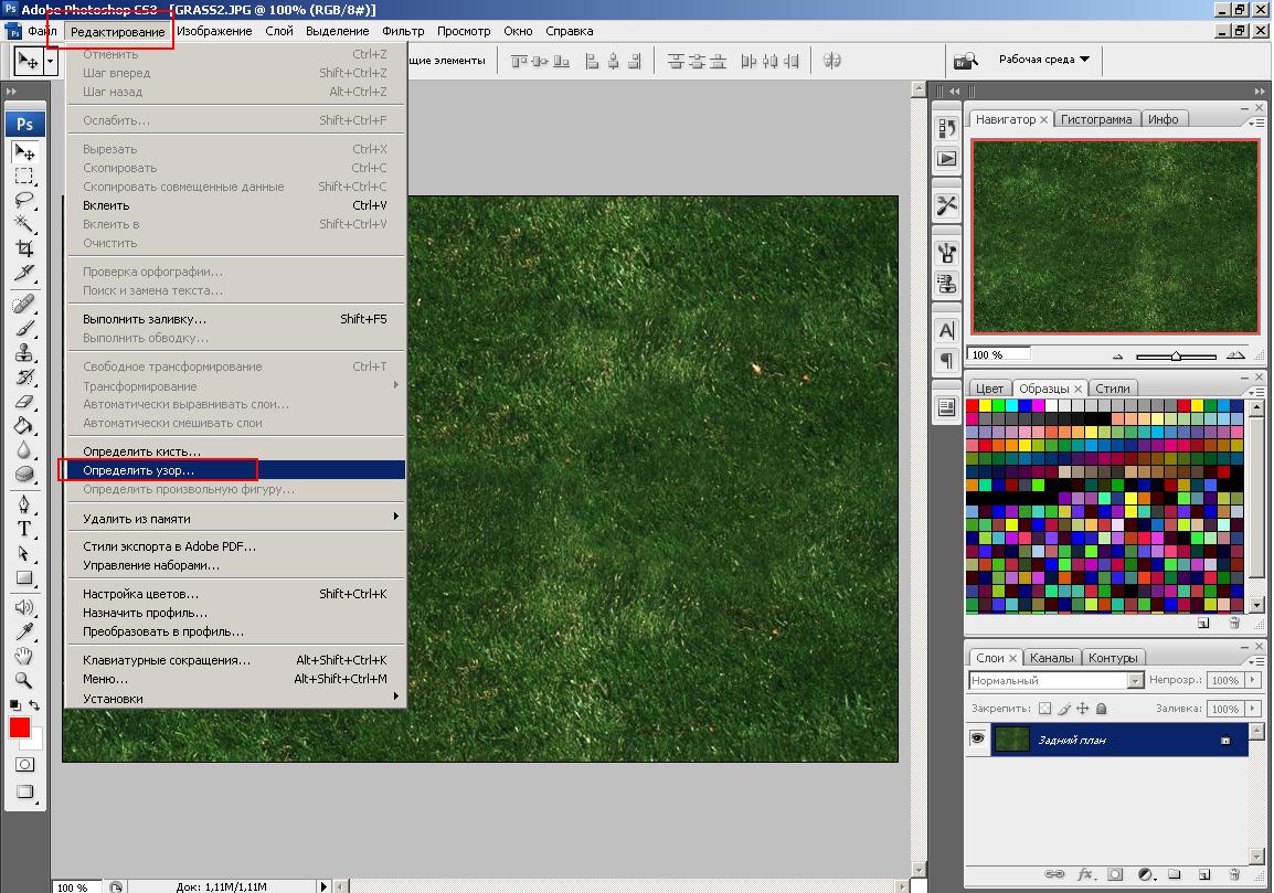 Теперь открываем например текстуру травы в фотошопе.Жмем