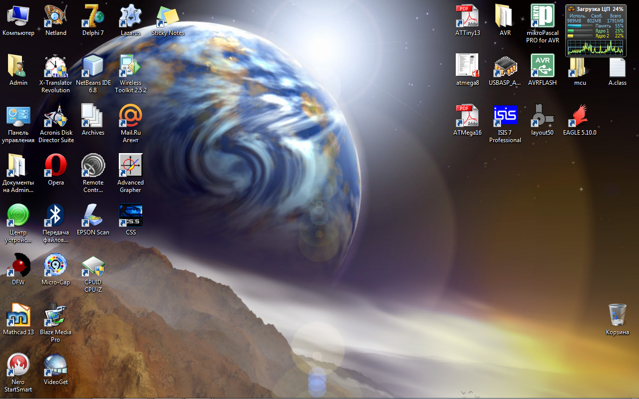 мой стол.Недавно почистил,но опять лень все группировать,раскладывать.Короче опять засоряю стол.