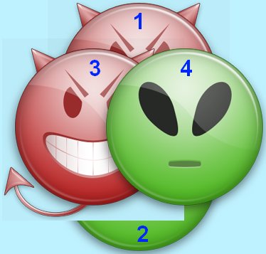Теперь еще одна проблема с прозрачностью. У спрайтов с "нарушеной" последовательностью вывода, альфа-канал "затирает" все что под ним, на скрине это хорошо видно у спрайта 3 (цифрами отмечен порядок вывода)