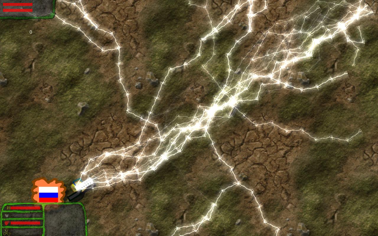Правда, из за объема графики (LIGHTBLEND&&ALPHABLEND+постоянная alpha, rotation and scale) мой бук начинает притормаживать, когда начинается активная пальба. ВОзможно, на Ваших компах потянет без проблем. К примеру, на моем родном 4-ядреном пне, с жирафом 9-м, тормозов вообще не наблюдается. Но кодить на нем не могу - в другом городе стоит