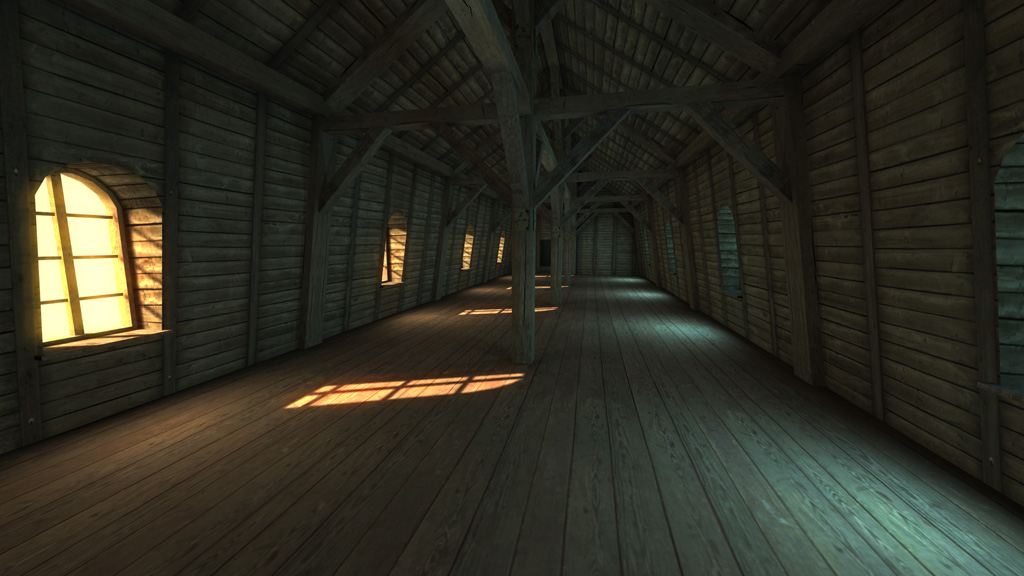 На первом скрине плинтусы хочеться, и декаль вдоль коридора - потёртость на досках..