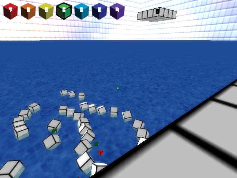 -отладить управление игрока и сделать какой-никакой HUD, чтобы игрок видел хотя-бы сколько каких кубов у него имеется "с собой";