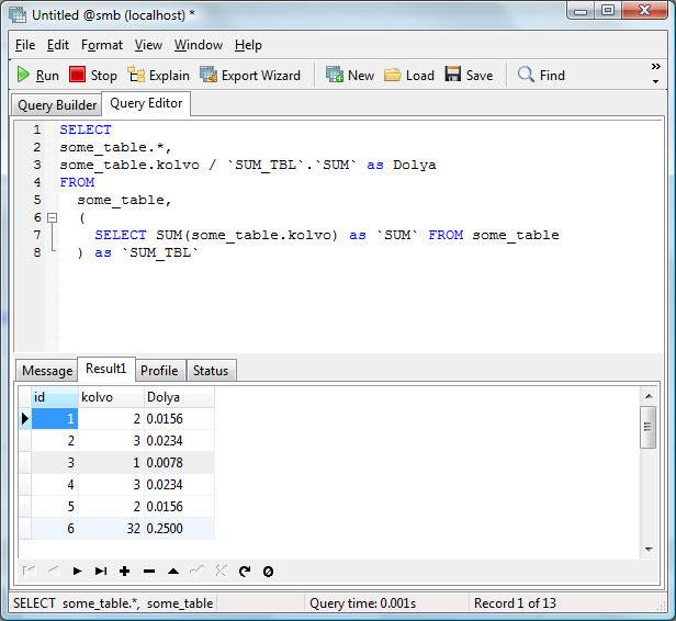 some_table.kolvo / `SUM_TBL`.`SUM` as Dolya