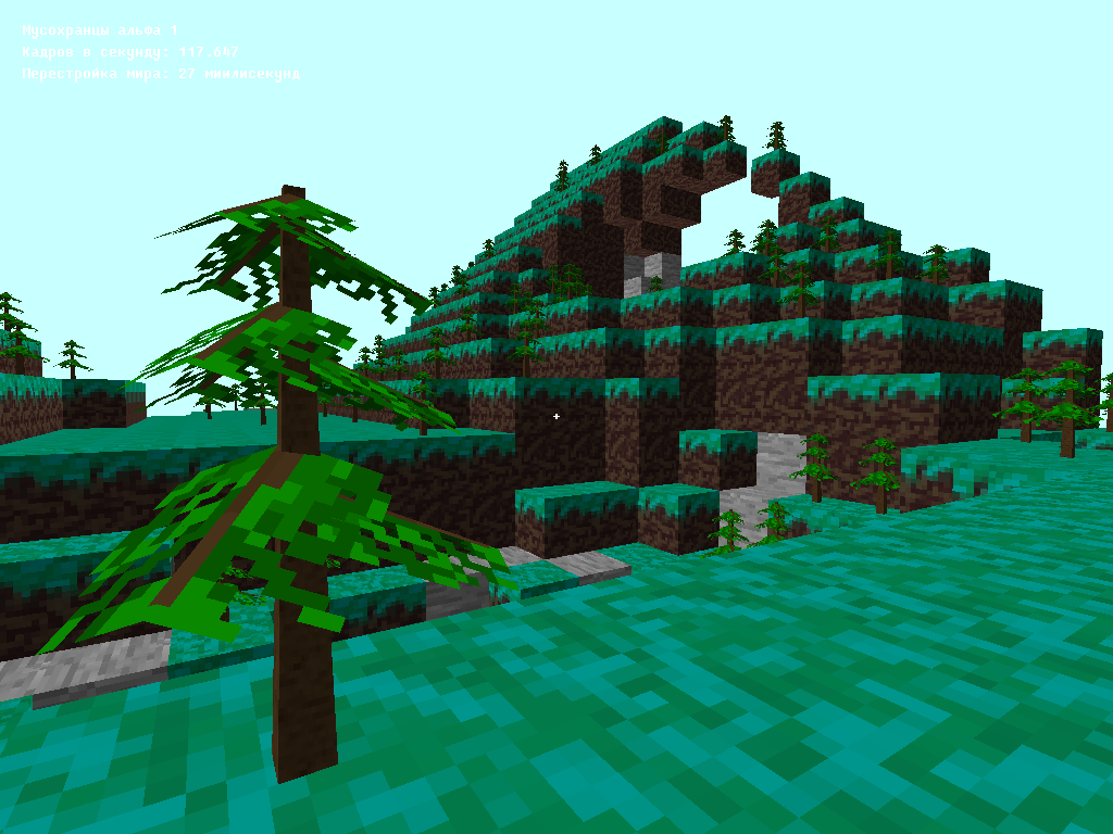 Также проведены работы по оптимизации. Мир стал больше, а выкапывание куба быстрее (на скрине 9 мсек, это дебаг мод, обычно 2-3 мсек)