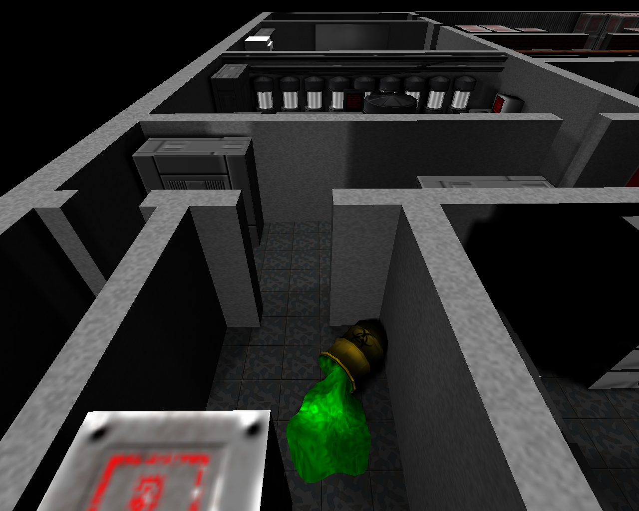 Хм... Вообще это сделано специально). Просто хотелось сделать отличие этой комнате. По задумке это технический узел. Очистка воздуха, электроснабжение и т.п. Нужно было сделать ее чуток более мрачной).