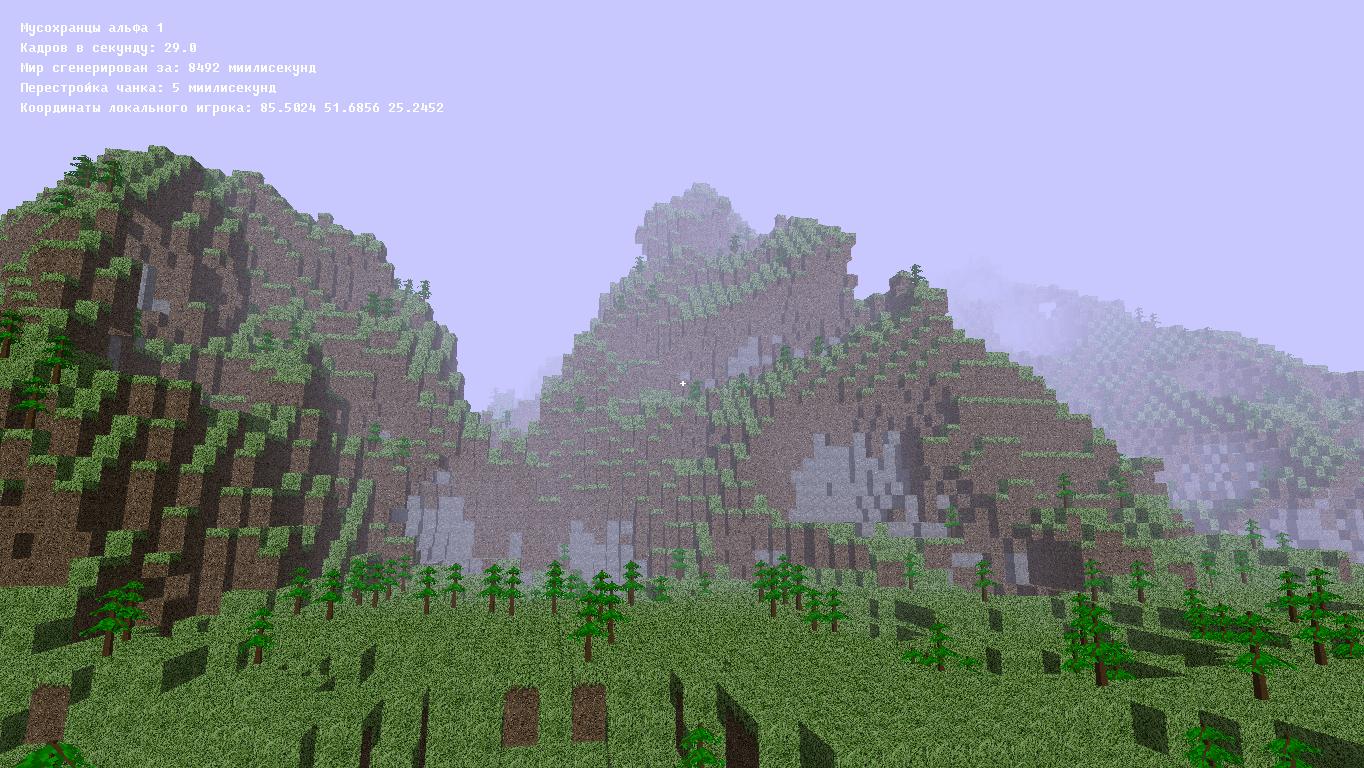 красная руда похожа на куски крабов или какую-то другую расчлененку (и зачем от них дешевые тени будто они висят над текстурой камня?), а чёрная чем-то смахивает на трёхглазый смайл (композиция кусков руды не лучшая). цвет тумана тоже неподходящий.