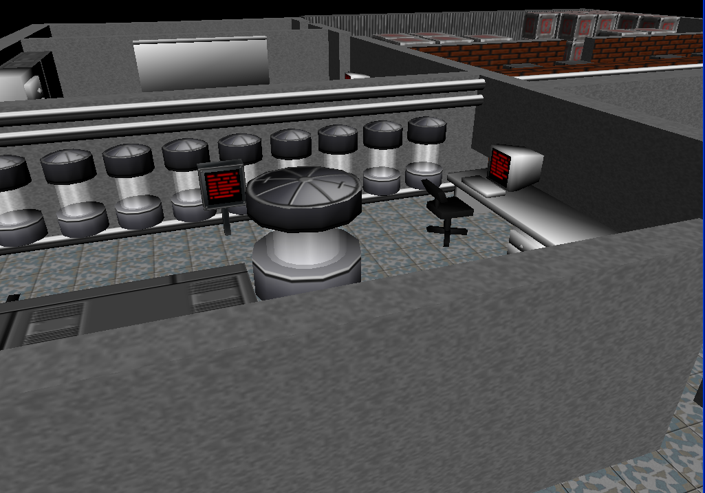 Хм... Вообще это сделано специально). Просто хотелось сделать отличие этой комнате. По задумке это технический узел. Очистка воздуха, электроснабжение и т.п. Нужно было сделать ее чуток более мрачной).