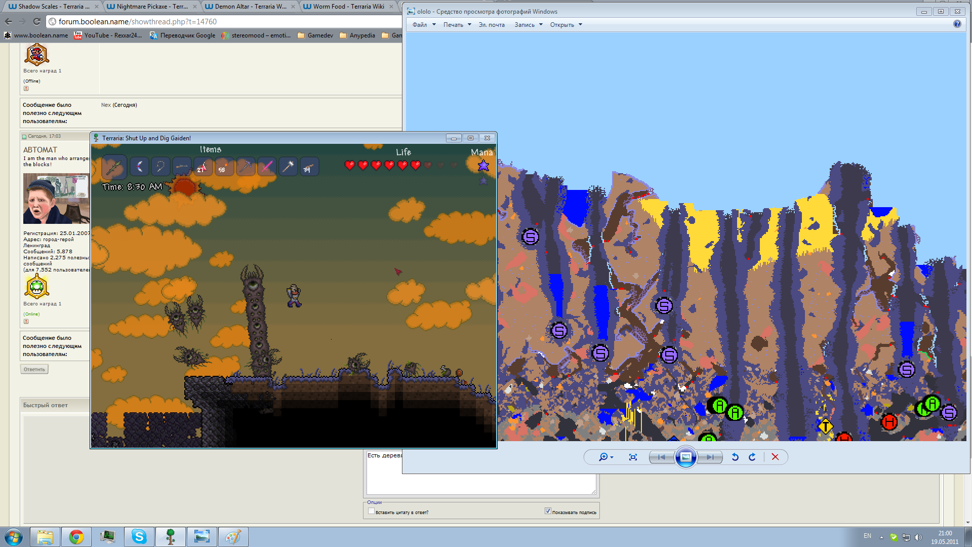 - Идем в Corruption, закапываемся в Chasm, находим Shadow orb, подрываем путь к ней динамитом и ломаем молотом(мы его догадались сделать раньше?)