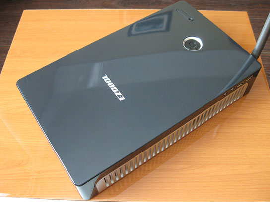 На борту Atom330, это сдвоенные в одном корпусе N270, в результате получился двухъядерный процессор с низким энергопотреблением (примерно 8W). В качестве чипсета используется фирменный чипсет ION от nVidia, который является специально разработанным чипсетом для процессоров Atom и обладает так же низким потреблением энергии и встроенным видео-ядром на основе GeForce 9400M. Этот факт и поддержка шейдеров 4.0 позволяет делать аппаратное декодирование большинства видеофайлов, без участия процессора, что очень важно для проигрывания FullHD видео 1920x1080p. Именно поэтому нам хватит мощности такого маломощного процессора чтобы смотреть фильмы в HD. Всё это великолепие накрыто массивным радиатором, который эффективно отводит тепло и позволит нам отказаться от использование процессорного кулера. Встроенный WiFi и IR-ресивер с пультом ДУ идут в комплекте Deluxe поставки.