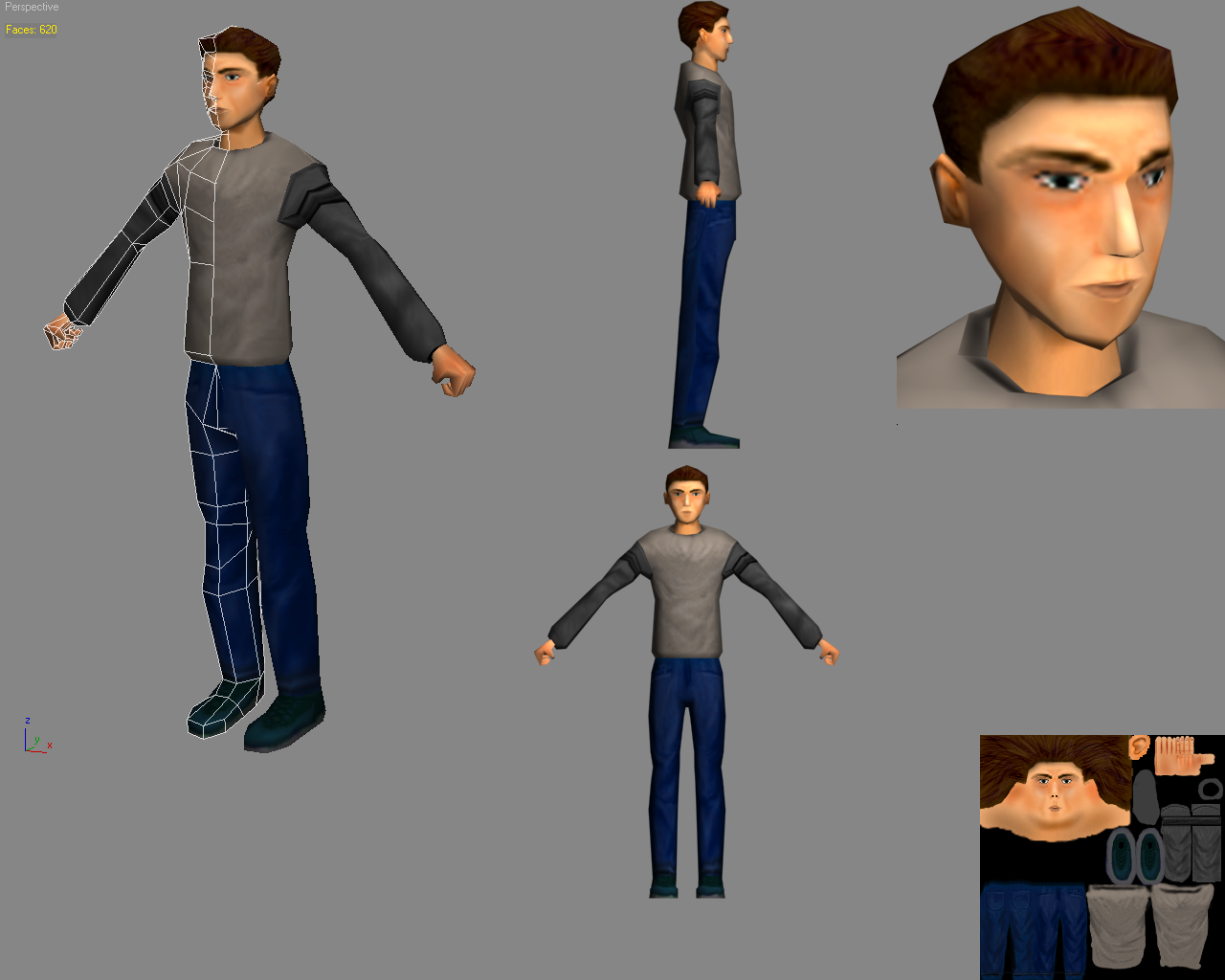 Аренши справился за несколько часов: лепка, текстурирование, выпекание текстур, ретопология, ригг; за что ему большое спасибо.