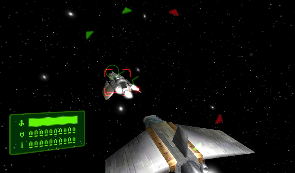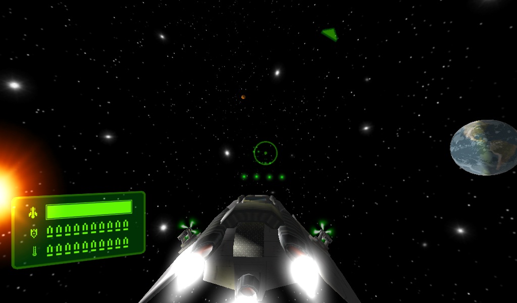 Итак, вот и я космосом заразился. В принципе, геймплей ещё сыроват, да и об планеты не разбиться, но полетать и пострелять в пиратов вполне можно, даже с союзником (звать его Борисычем - хз почему  ). Союзник создавался для проверки коллективности действий ИИ.