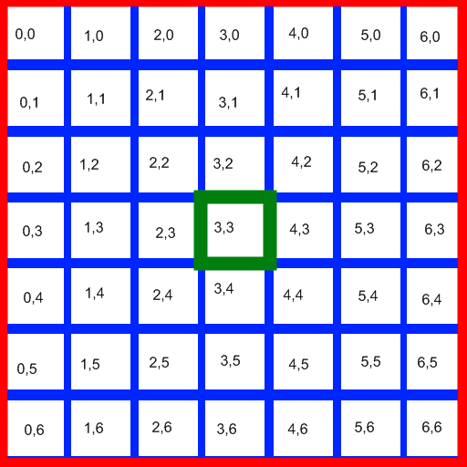 Возьмём массив Sector(6,6,15,15), первые два элемента которого отвечают за х и у чанка, относительно игрока(!). Для начала их заполним, взяв всю инфу из файлов. А вот как они должны рисоваться: