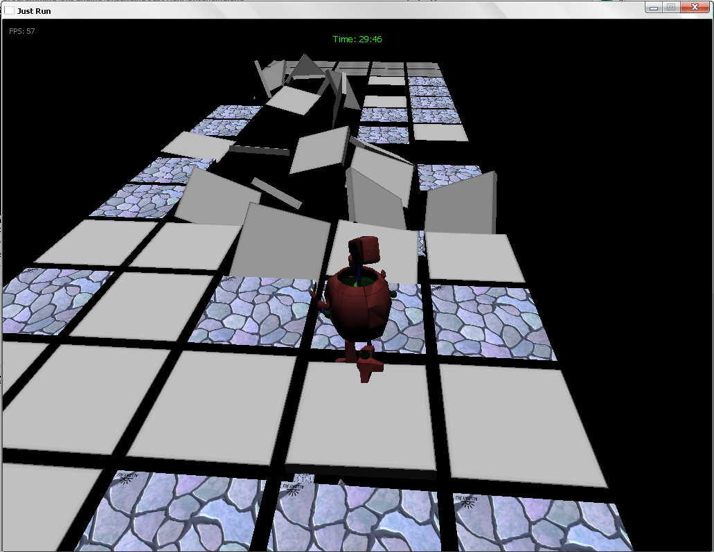 На данный момент переработал уровни, теперь вместе с шириной изменяется и длинна площадок (от 10 до 30 ячеек в длинну). Стало интереснее. Сейчас планирую ещё несколько типов ловушек которые будут появляться по мере прохождения игры. И так же размещение ловушек на разной высоте, что должно заметно повысить сложность (ну это конечно ещё не известно, всего лишь предположение). И плюс я всё таки хочу реализовать сохранение и загрузку игры (сейчас разбираюсь с чтением из файла в С++, в блице всё было проще некуда, тут же посложнее и слегка запутано пока что для меня).