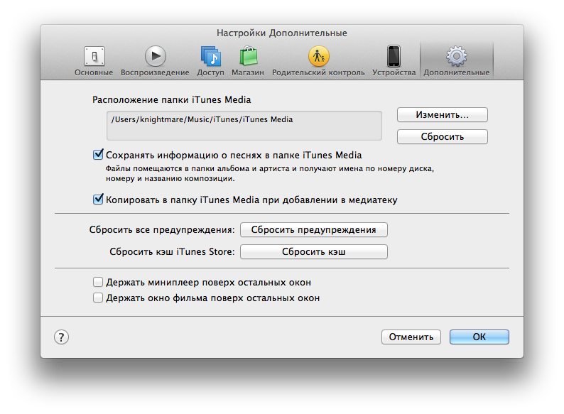 Мама работает за Маком, жалуется на iTunes, говорит что место на диске кончается, а он делает с каждого музыкального файла копию и куда-то себе схороняет.
