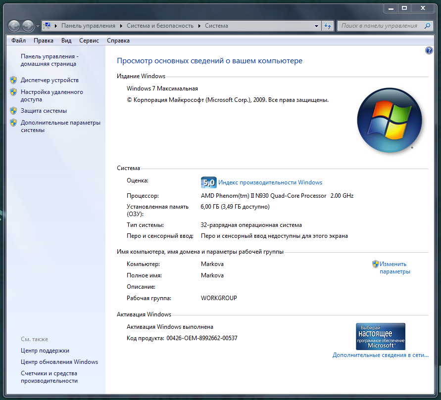 Господи, клавиши Windows+Pause нажми.