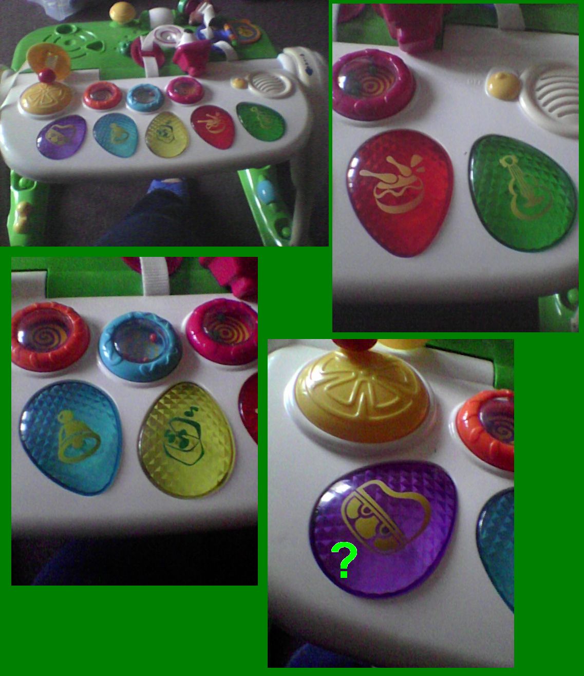 Была в гостях, где есть маленький ребенок. Среди игрушек наблюдался игровой музыкальный столик с различными прибамбасами, столик кстати неплохой. Среди всего прочего, на нем есть пять кнопочек, нажимая на которые можно воспроизводить различные мелодии. На каждой из них, что-то изображено (гитара, барабан с палочками, музыкальная шкатулка с нотами, колокольчик), но вот что изображено на крайней я так и не смогла понять…. Какие ваши идеи?