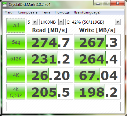 Подключаем диск в порт SATA-II и тестируем (без мухлежа с данными 0x000).