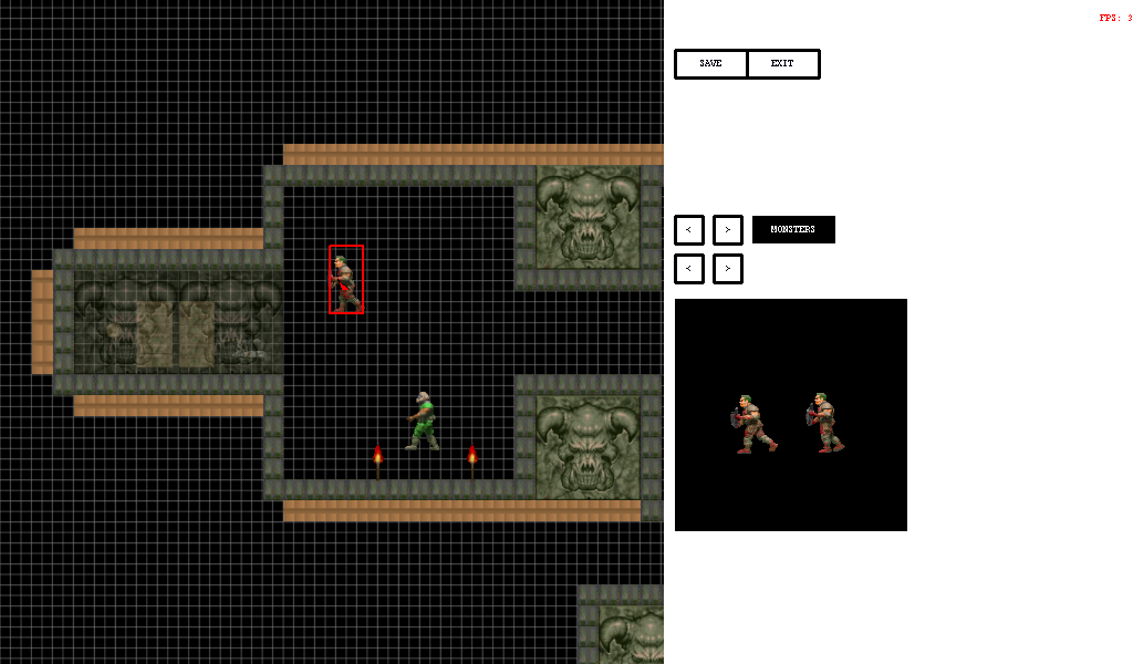 Так же, на цифрах основной клавиатуры выбирается тип того, что мы ходим добавить. На + и - меняются элементы выбранного типа. Левая кнопка мыши - добавить элемент на карту, правая кнопка - убрать. Убираются только элементы текущего типа. Редактор будет меняться от раза к разу, надеюсь что в лучшую сторону