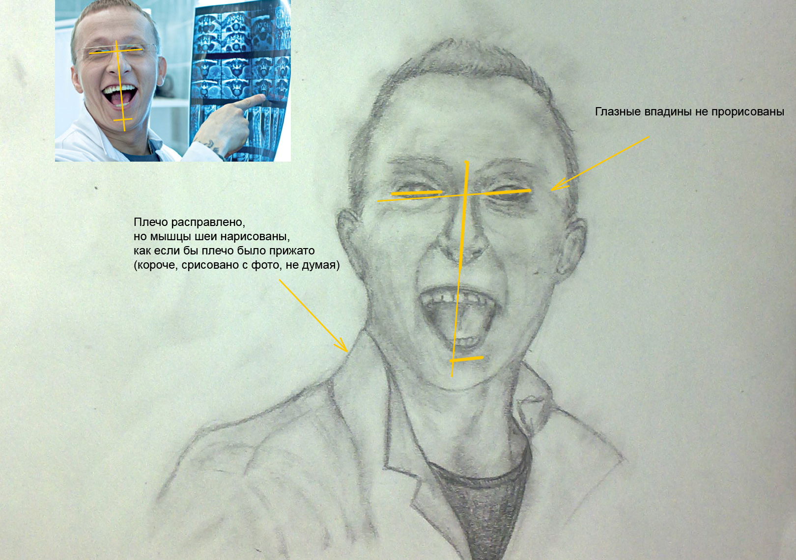 Срисовывая с фотки втупую, рисовать не научишься. Хули так всё криво, м?