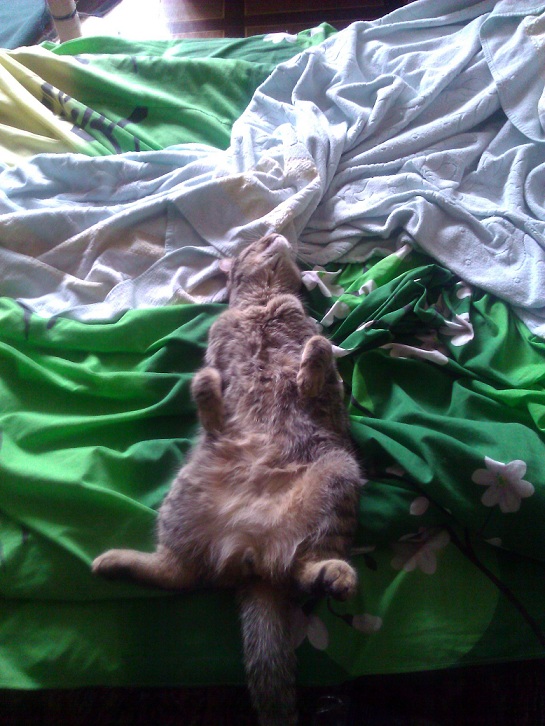 После того как я встаю, коте ложится