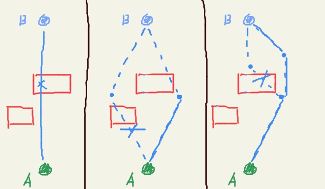 Может в математике это эффективно, но если ты начнешь проверять как в вики каждую точку на пересечение с объектом в 3д мире - комп загнётся от таких А-звезд и волновых эффектов.
