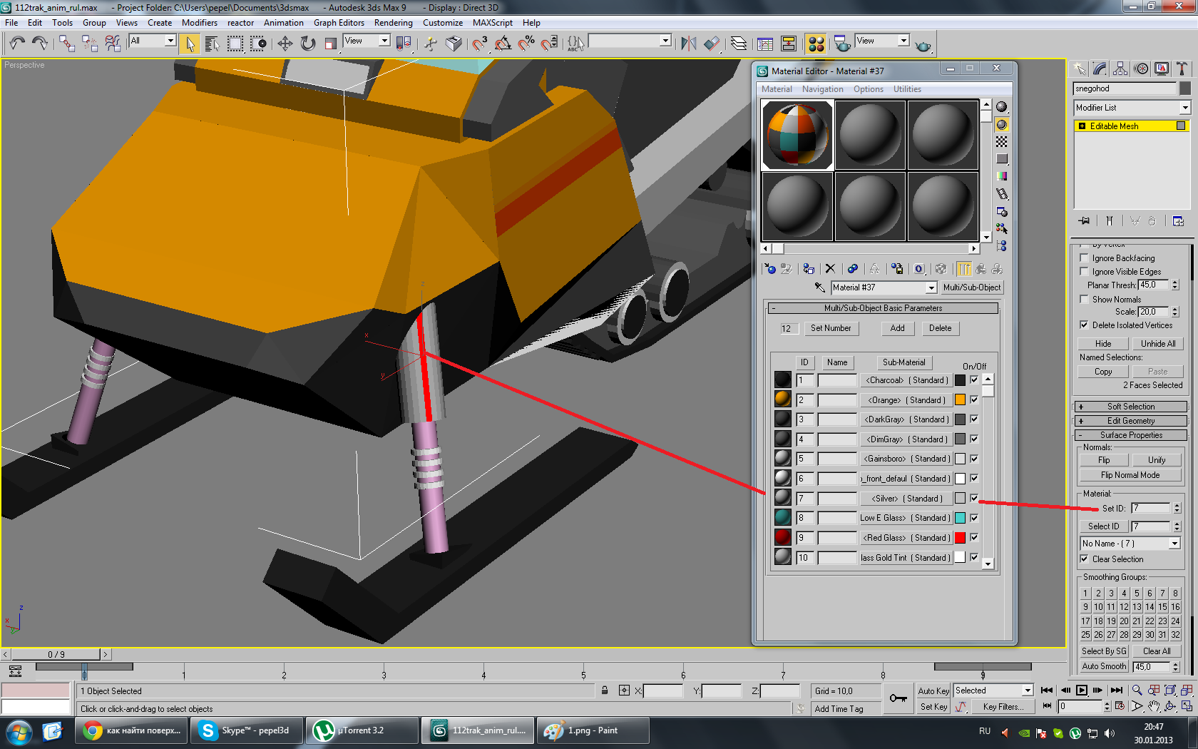 1) и теперь я пытаюсь отдетачить руль у снегохода чтобы его тоже крутить в б3д. но тут непонятно: вместе с рулём почему-то отдетачивается часть поверхности, хотя выделял по вершинам правильно и повторил это 2раза.