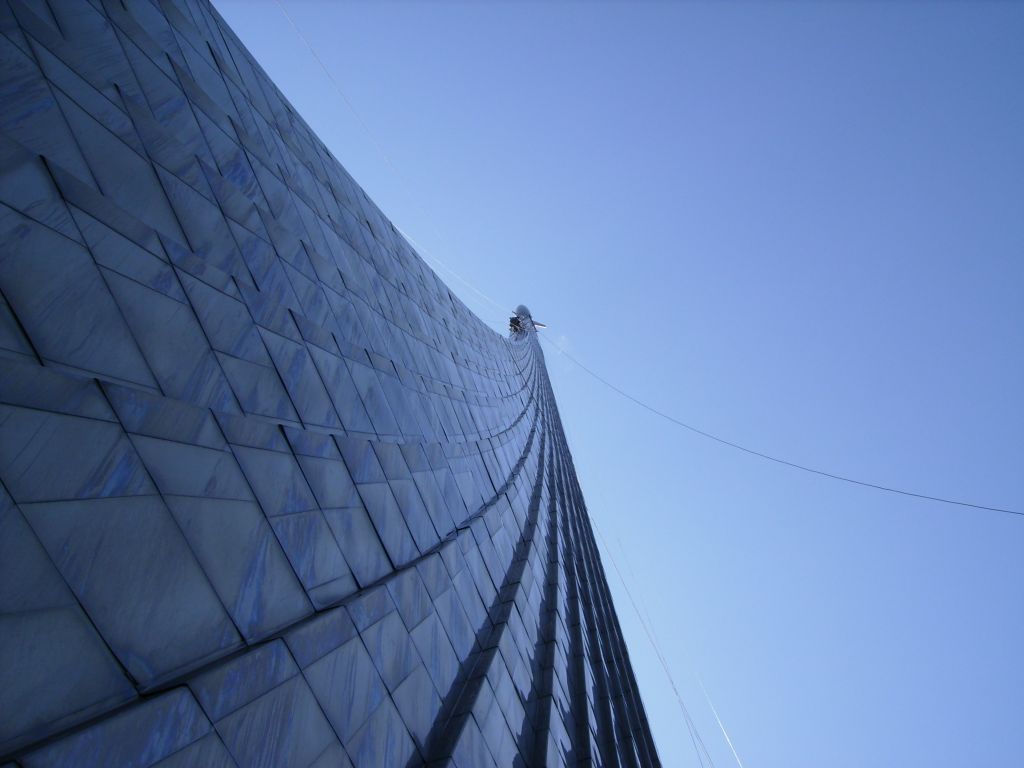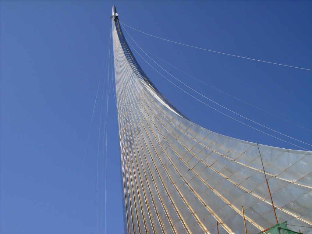 Установка памятника Королёву. Место крепления, конечно, оригинально.
