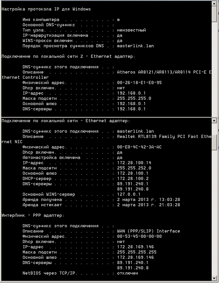 ipconfig /all- сделал, masterlink.lan - это Интерлинк