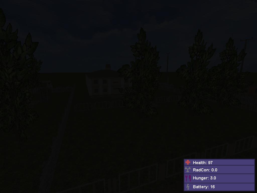 Вдруг вдалеке заметил что то мигает. (Схавал консерву, подумал что гг слишком быстро голодает, чем-то болеет?) Хотел рвануть туда напрямик, но по пути сколлизился с крышей одноэтажного дома и упал на землю.