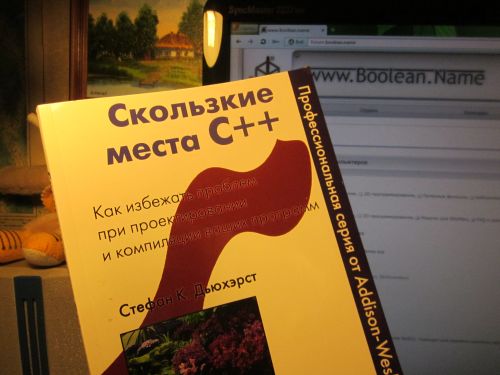 А ещё книгу можно было назвать «Всё, что вы хотели узнать про Си++, но боялись спросить», или даже «Как завалить студента на рядовой теме». Книга состоит из 99 советов, более-менее упорядоченных по главам. Читать как связное повествование эту книгу можно, но сложно. Как и советует автор, читать надо по чуть-чуть отбирая интересное или актуальное, и пользуясь разветвлённой системой отсылок к другим советам. Требования к читателю книги зависят от рассматриваемых советов: есть и пустяковые (вроде вопросов комментирования кода), есть повеселее (explicit конструкторы и взятие имени массива как индекса от числа), есть выносящие мозг («преобразование в указатель на указатель на константу» - и дело вовсе не в словоблудстве, а в довольно любопытном поведении компилятора). Я прочитал 38 первых советов и планирую не забрасывать книгу. Насыщение книгой происходит очень быстро, а разбитый на кучу частей в рамках совета код неким образом противоречит абстрактной концепции об области видимости, о которой пишет автор (качать с сайта цельный код к советам лениво).