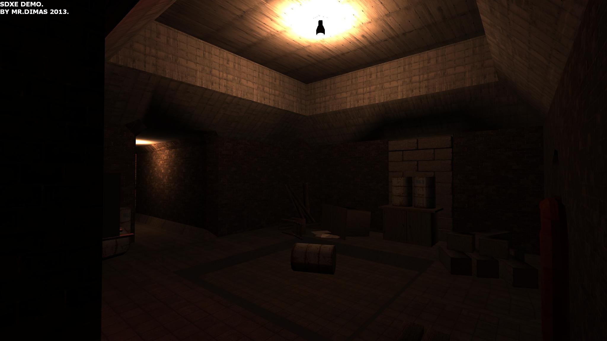 Хей, хей, хей. На даче делать вечерами было нечего. У меня был мой говнобук( Asus EEE PC, 2 Gb RAM, Intel GMA 3150 ), студия, исходники ирлихта и других библ, и полное отсутствие интернета . Ну и по вечерам я пилил двигло на директХе. Постепенно движок толстел, и тут я подумал - может игру запилить? По счастью у меня оказался с собой недодвиг в котором был самописный экспортёр из макса, только статика - никакой анимации. Недолго думая, начал делать хоррор( задолбали эти хорроры чес слово, но когда за окном сова кукукает  доброе светлое в голову не идет ). Потихому сделал небольшой уровень, написал нихуёвую скриптовую системку. Подтянул графен до PS 2.0 ( лол да GMA 3150 поддерживает ), там многопроходный рендеринг света. Со старых проектов понахватал звуков, еще пришлось распотрошить халфу вторую/первую тоже на звуки ). Собрал все воедино. И о чудо оно заработало  . На говнобуке получил 15 ФПС при 3-х проходах рендеринга ( 5 источников света за проход ). Дал друганам потестить, 3 их 3-х человек насыпали по небольшой кучке кирпичей. Теперь твоя очередь дорогой мой ПеКарь тестировать.