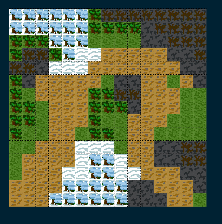 { "tiles": [ "grass-trees", "rock-trees", "grass", "road", "snow-trees", "rock", "snow" ], "width": 15, "height": 15, "map": [ 4,4,4,4,4,4,4,4,4,4,4,1,1,1,1,4,4,4,4,3,3,3,3,3,3,4,1,1,1,1,4,4,3,3,3,3,3,3,3,3,3,3,1,1,1,4,3,3,3,3,3,3,3,3,3,3,3,3,1,1,3,3,3,3,3,6,6,6,6,3,3,3,3,1,1,3,3,3,6,6,6,6,6,6,5,5,3,3,3,1,3,3,4,4,4,4,4,4,4,5,5,3,3,3,1,4,4,4,4,4,4,0,1,1,1,5,5,3,3,1,4,4,4,4,4,0,0,1,1,1,5,5,3,3,1,1,4,3,3,3,0,0,0,2,2,2,3,3,3,1,1,4,3,3,3,0,2,2,2,2,2,3,3,3,1,1,1,3,3,3,3,2,2,2,3,3,3,3,2,0,1,1,3,3,3,3,3,3,3,3,3,3,3,2,0,1,1,1,3,3,3,3,3,3,3,3,2,2,0,0,1,1,1,1,0,0,0,0,0,0,0,0,0,0,0 ] }