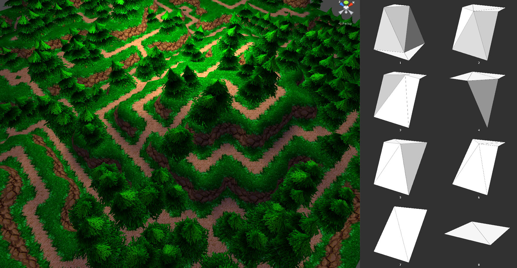 Я, конечно, в программировании три дэ, да и игр вообще, не особо разбираюсь и некоторые обороты речи твоих постов даже не совсем понимаю (всякие меш, дип, пик и т. п.), но разве нельзя применить какую-то технологию вроде этой: Смешивание текстур ландшафта, чтобы сократить количество пререндеренных тайлов и чтобы в будущем можно было добавлять новые виды ландшафта?