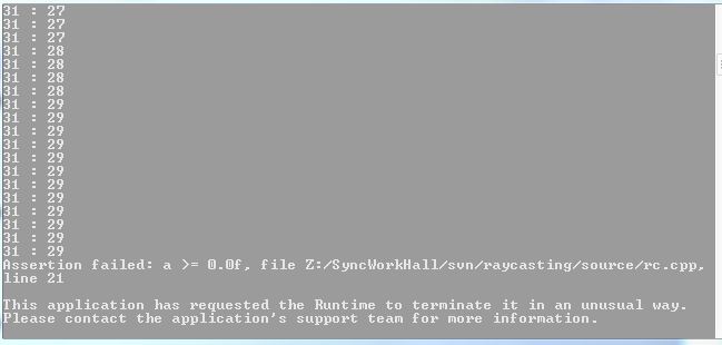 Да у меня тоже самое. Пока добавил костыль - если возникнет баг то на секунду пропадет изображение, но игра не вылетет. Причина же где то в недрах алгоритмов расчета бросания лучей - они иногда странные координаты пересечения со стенами возвращают, возможно последтвия округления и преобразования из одного типа в другой. Сейчас буду целиком на float переводить все расчеты, потому что нет смысла на современных цп делать только целочисленные вычисления.