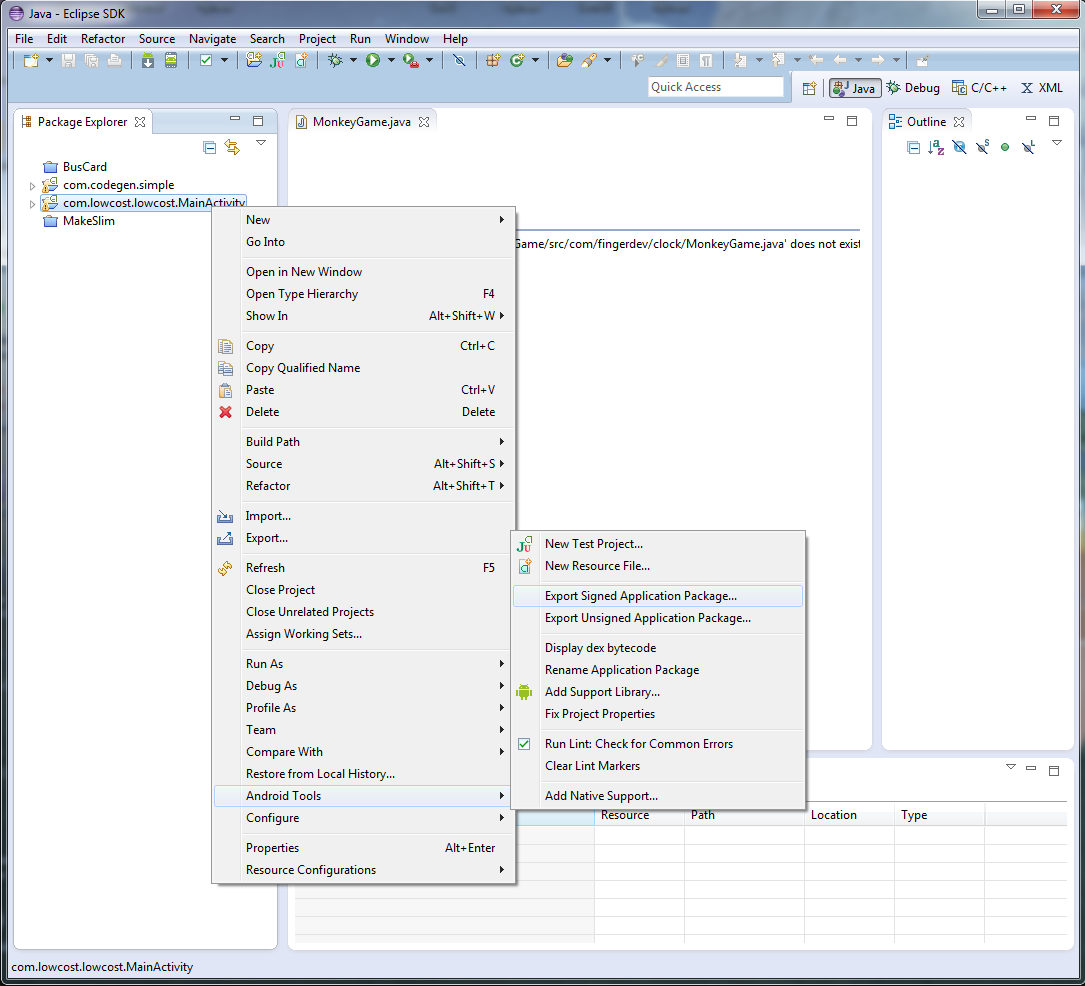 Monkey генерирует валидный проект, его можно импортировать в eclipse: